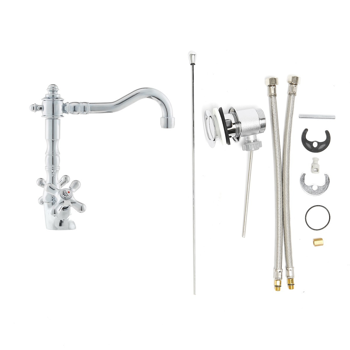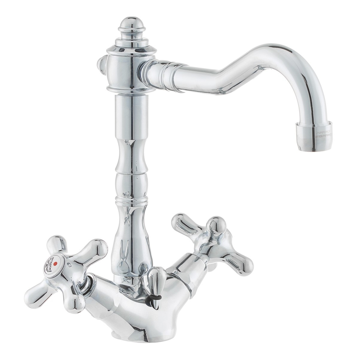 Paffoni Ricordi Mélangeur de lavabo XL avec tirette et bonde, Design vintage, Chrome (IR085)