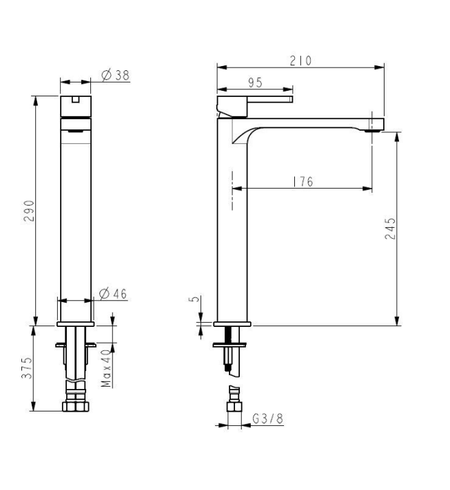 Ce mitigeur de lavabo haut sans tirette ni vidage convient particulièrement aux salles de bains conçues dans un design simple et minimaliste.