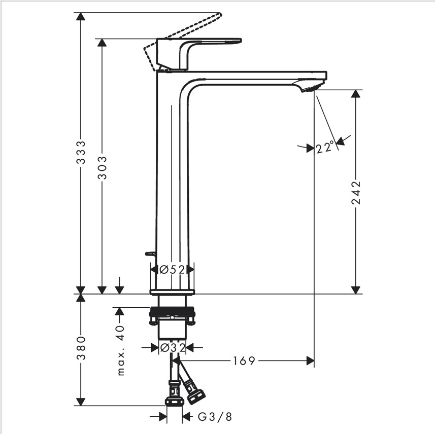 Caractéristiques du REBRIS S 240 CoolStart Mitigeur Monocommande Lavabo Taille XL, Noir Mat (72580670):