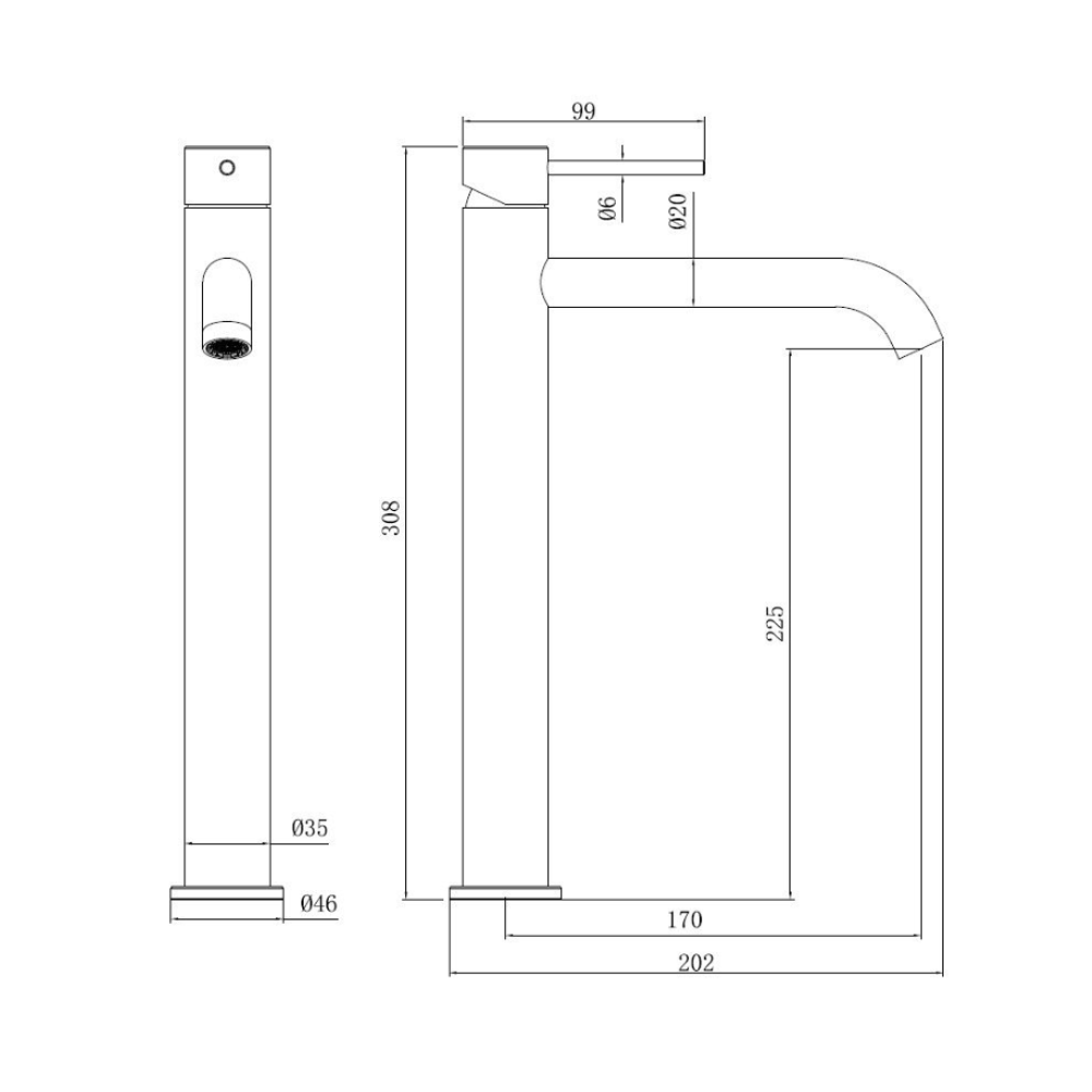 - Hauteur du robinet : 30,8 cm