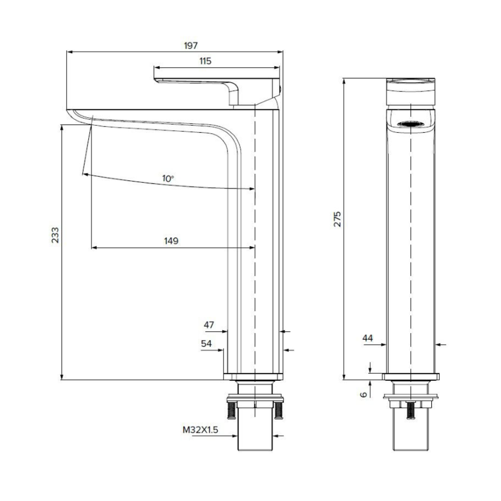 Caractéristiques du mitigeur lavabo haut à levier, sans vidage, Swiss Aqua Technologies Brevis, noir mat (SATBSBRE285C) :