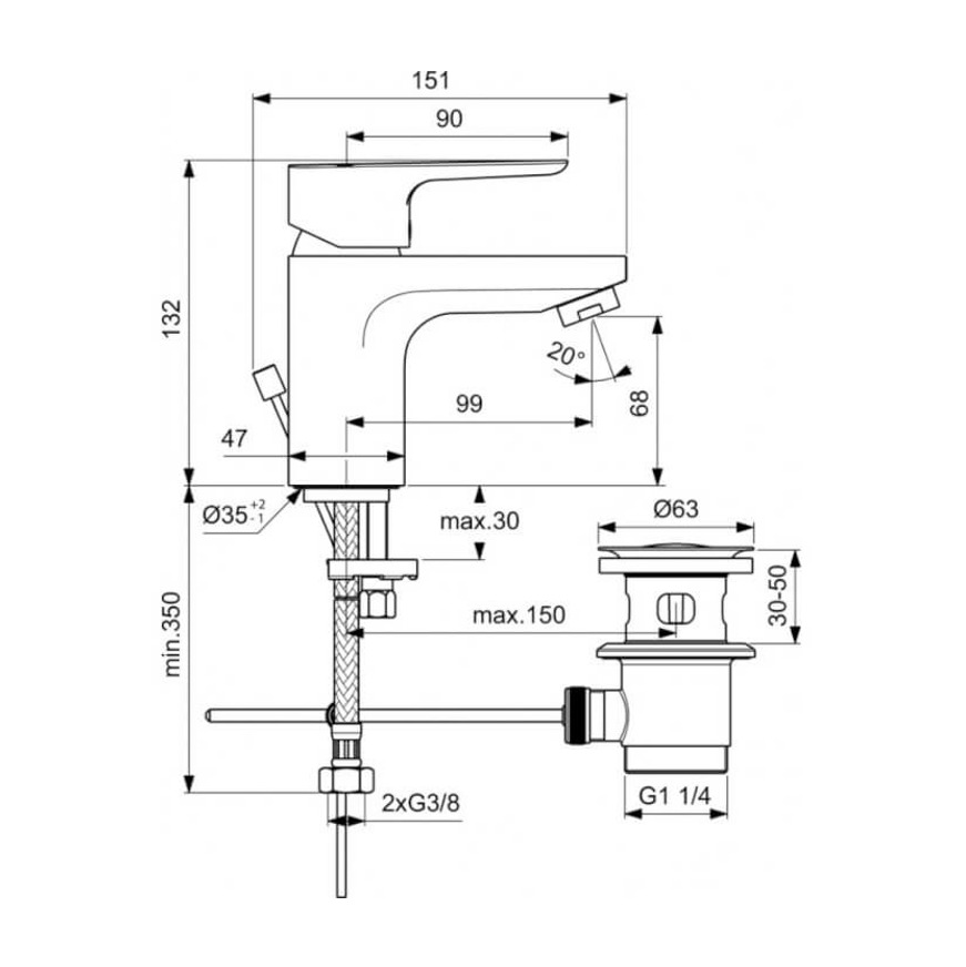 Ideal Standard Ceraplan III Mitigeur de Lavabo, Chrome (BC563AA)