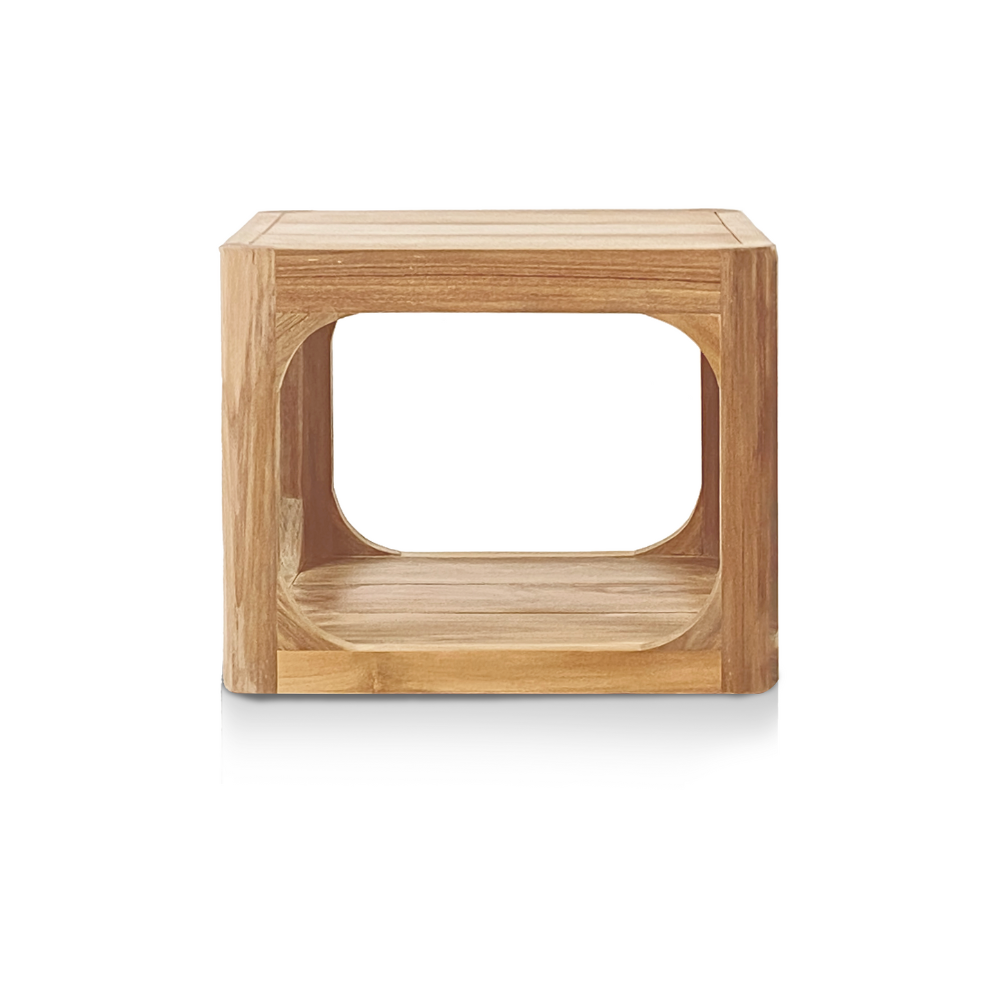 Naturel Table d'appoint de jardin en teck massif, 50x50x40 cm, deux plateaux et angle arrondie, fabrication artisanale (NATOFTB5050S)