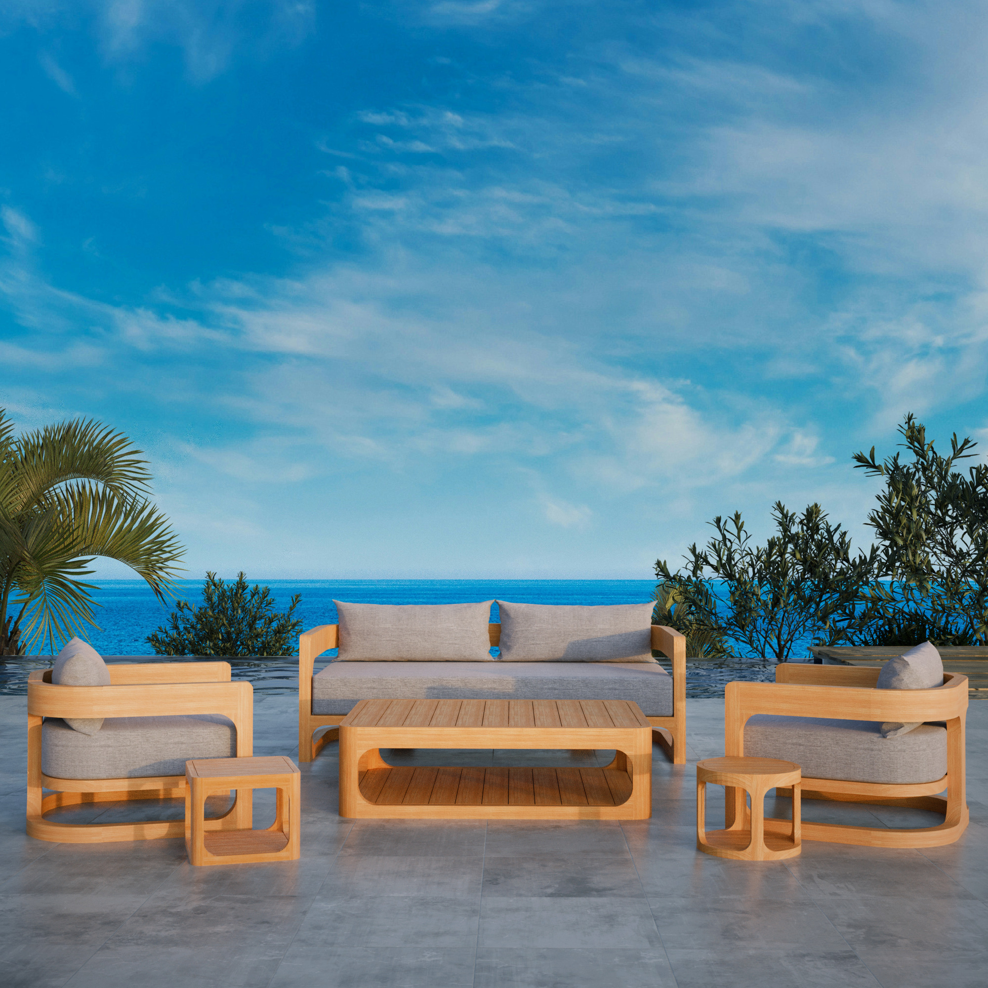 Le teck massif, reconnu pour sa solidité et sa résistance aux intempéries, traverse les saisons sans altération. Naturellement immunisé contre l’humidité, les insectes et les champignons, il conserve sa beauté et développe une patine unique avec le temps.