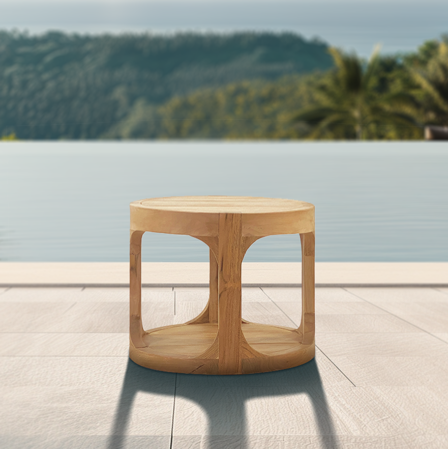 Table d'appoint ronde de jardin en teck massif NATOFTB5050R – Élégance et artisanat au service de votre extérieur