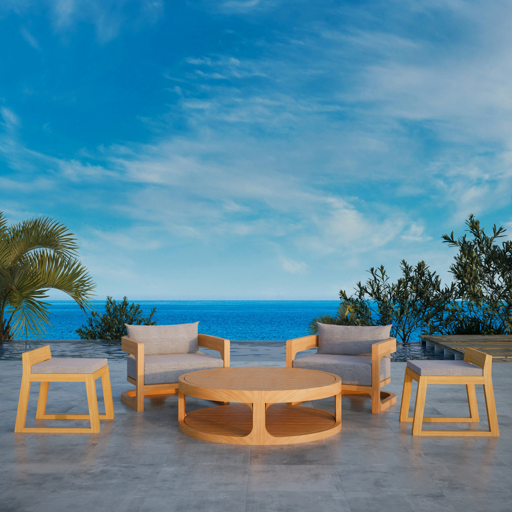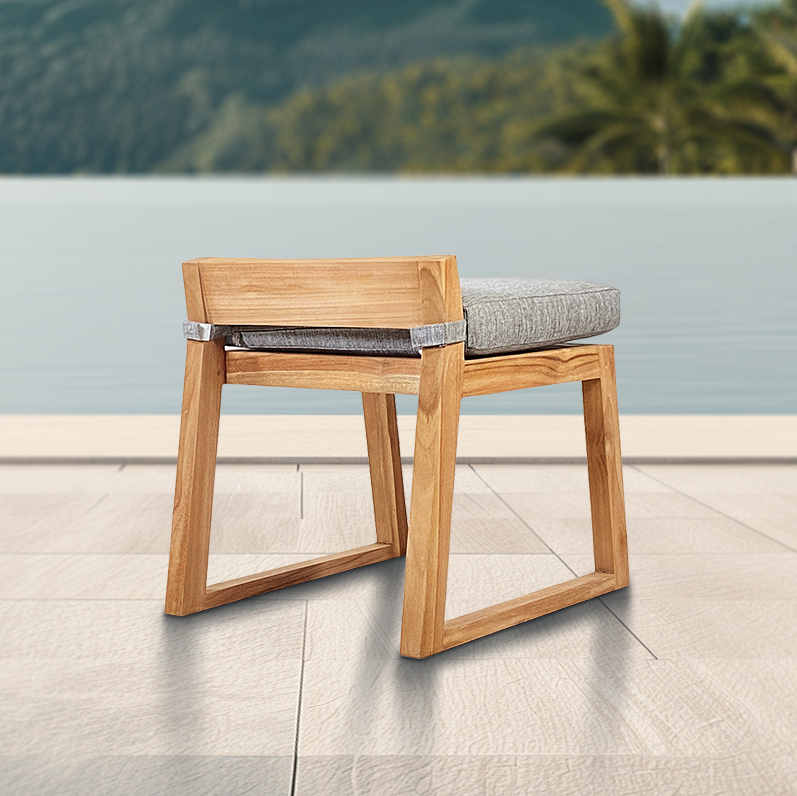 Naturel Chaise de table extérieur en teck massif, 50x59.5x56 cm, avec coussins gris perlé, sans dossier (NATOFCH50S)