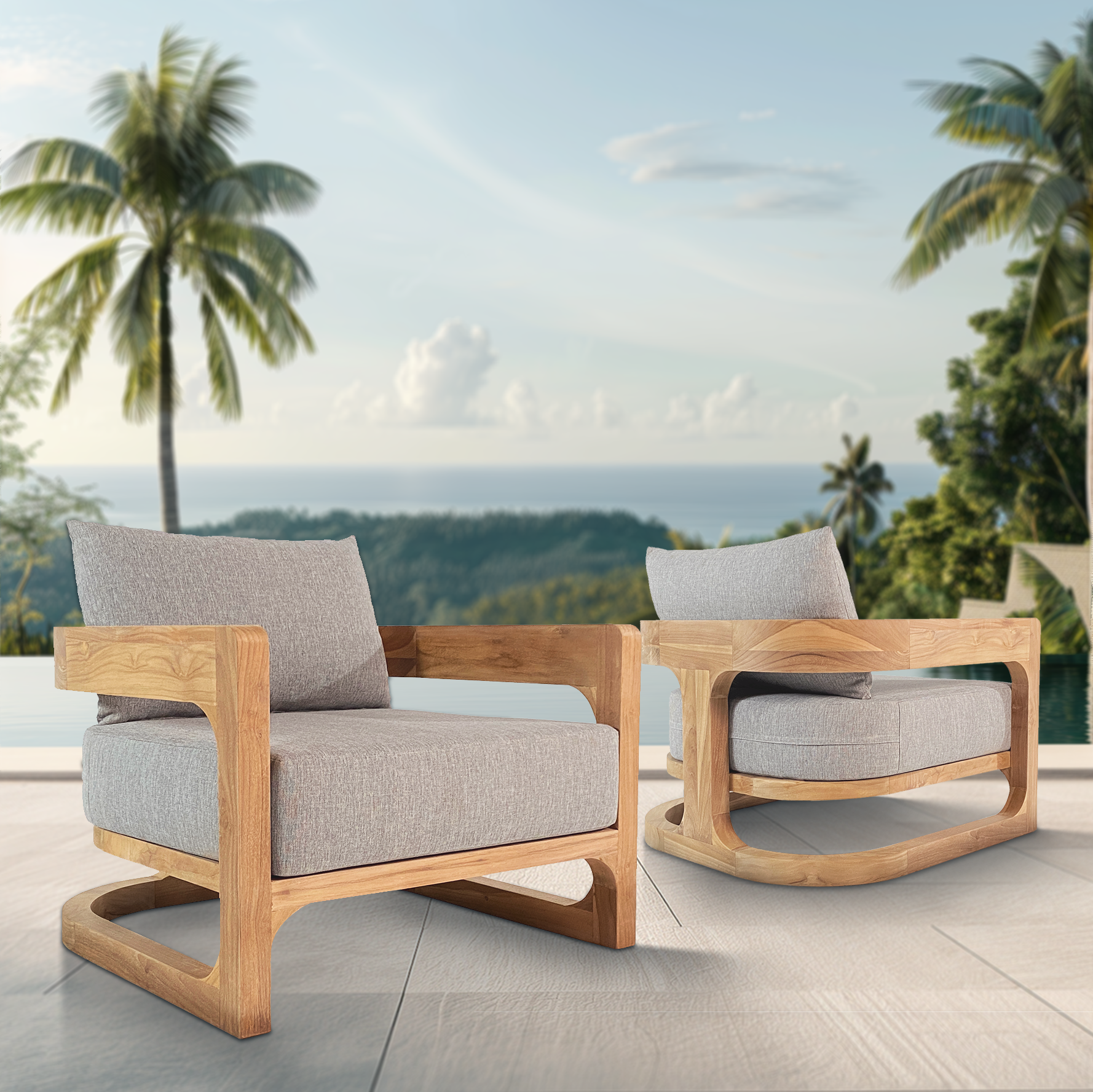 Caractéristiques du set de 2 fauteuils de jardin en teck massif, 87x86x60 cm, avec coussins gris perlé (NATOFCH87-DUO):
