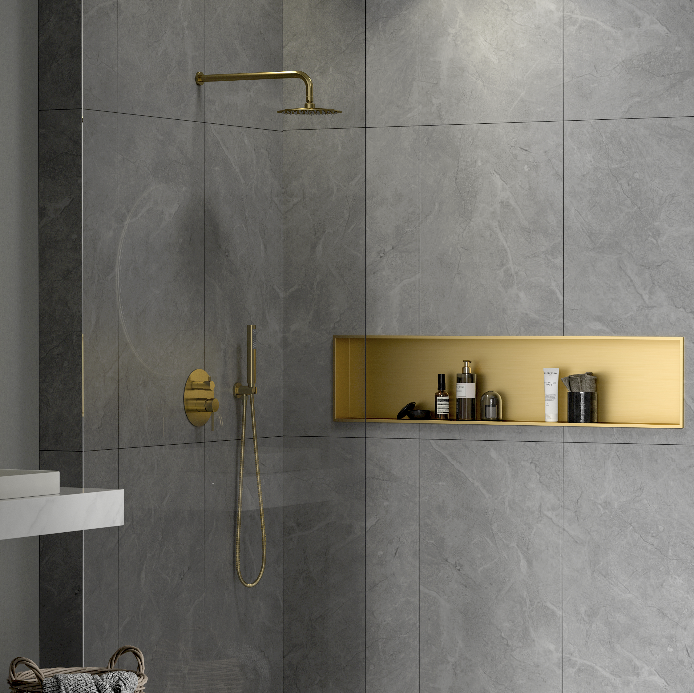 Swiss Aqua Technologies Niche de Douche à encastrer, Acier Inoxydable 304, 120x30x10cm, Or brossé PVD (SATAURN12128BG)