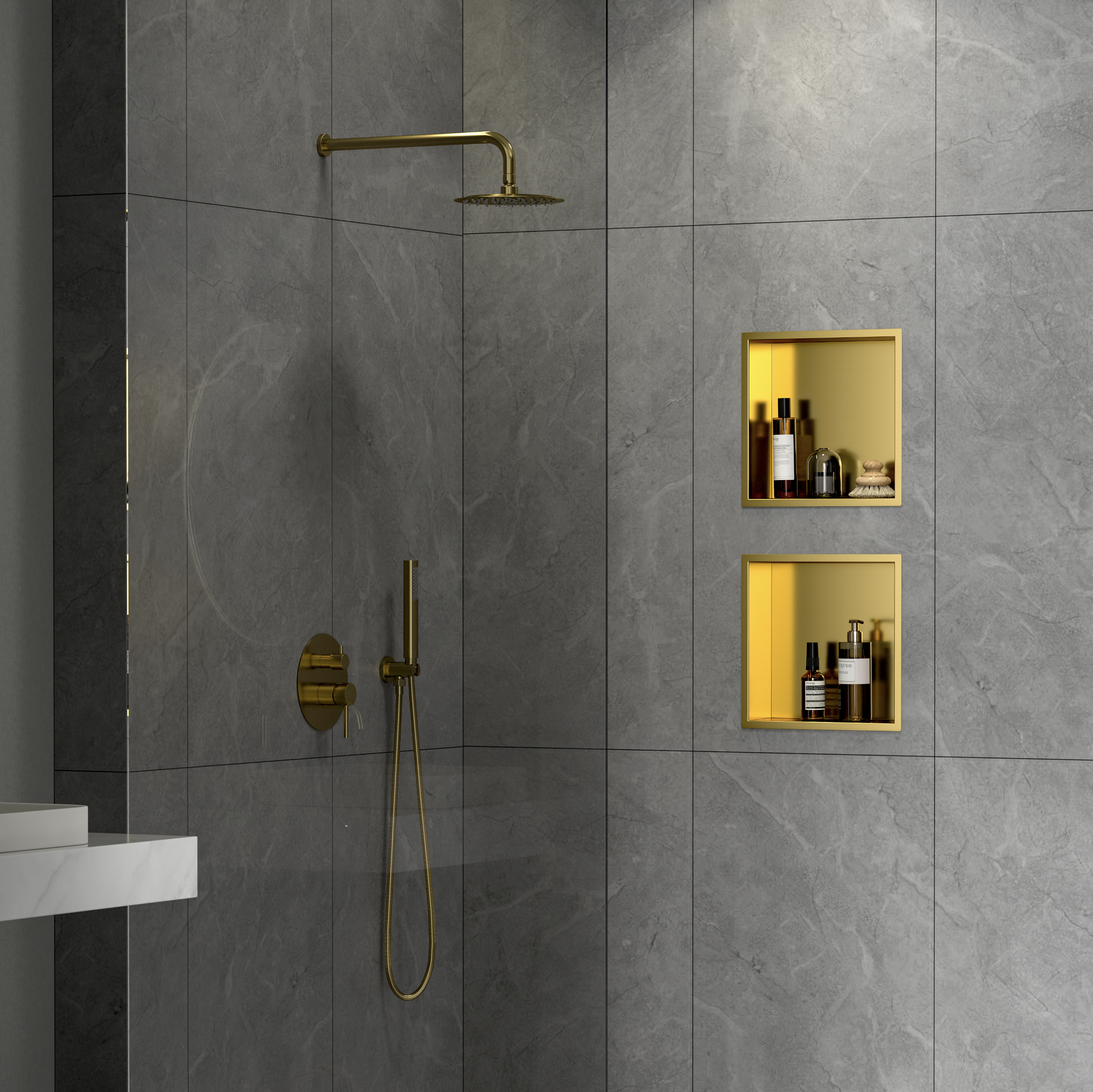 Caractéristiques de la Niche de Douche à encastrer, Acier Inoxydable 304, 30x30x10cm, Or brossé PVD (SATAURN3030BG) :