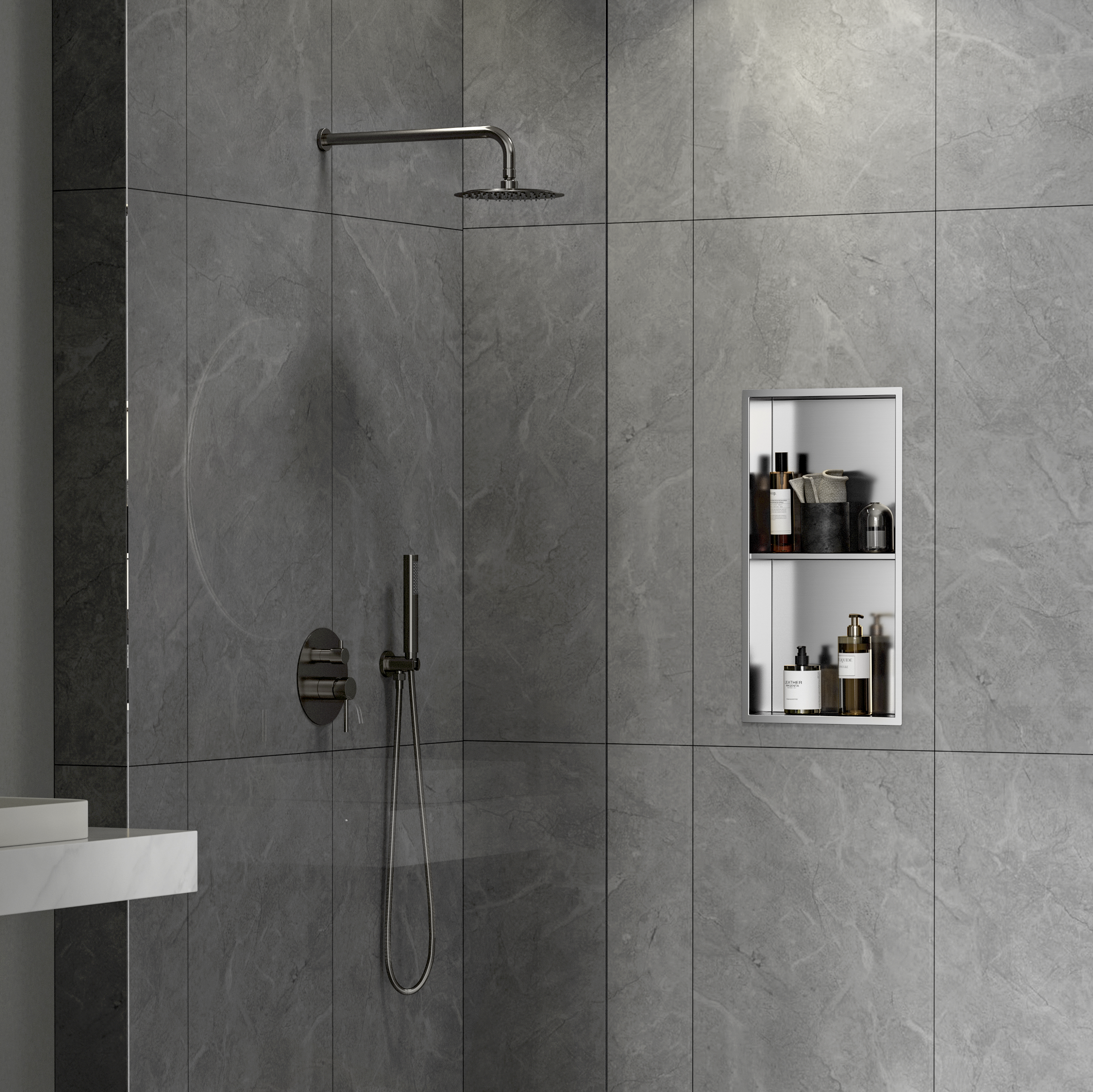 Swiss Aqua Technologies Aurum Niche de Douche à encastrer, Acier Inoxydable 304, 2 étagères, 60x30x10cm, Chrome brossé (SATAURN6030SBS)