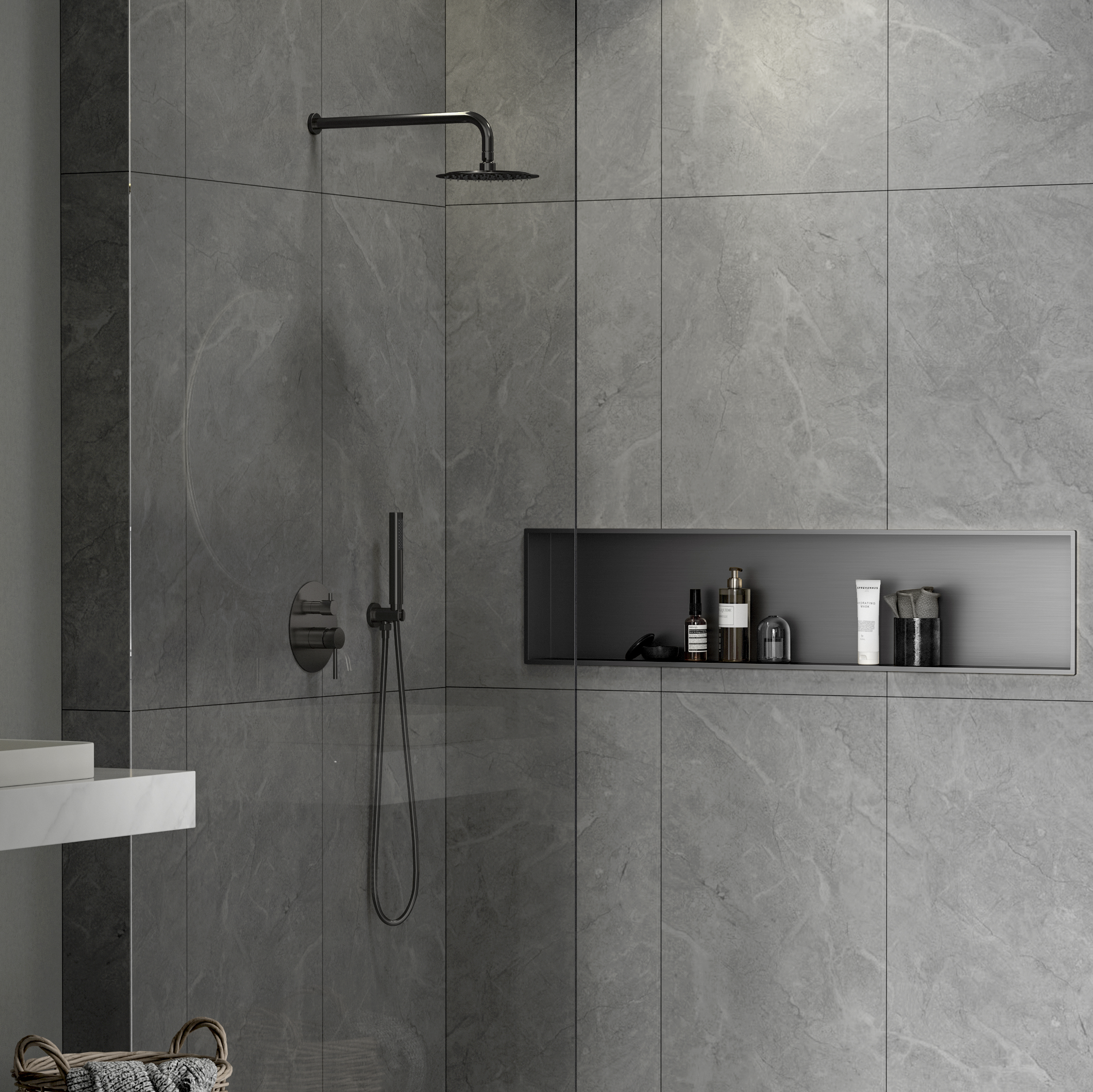 Ceramia Timeless Niche de Douche à encastrer, Acier Inoxydable 304, 120x28x10cm, Gun Métal brossé PVD