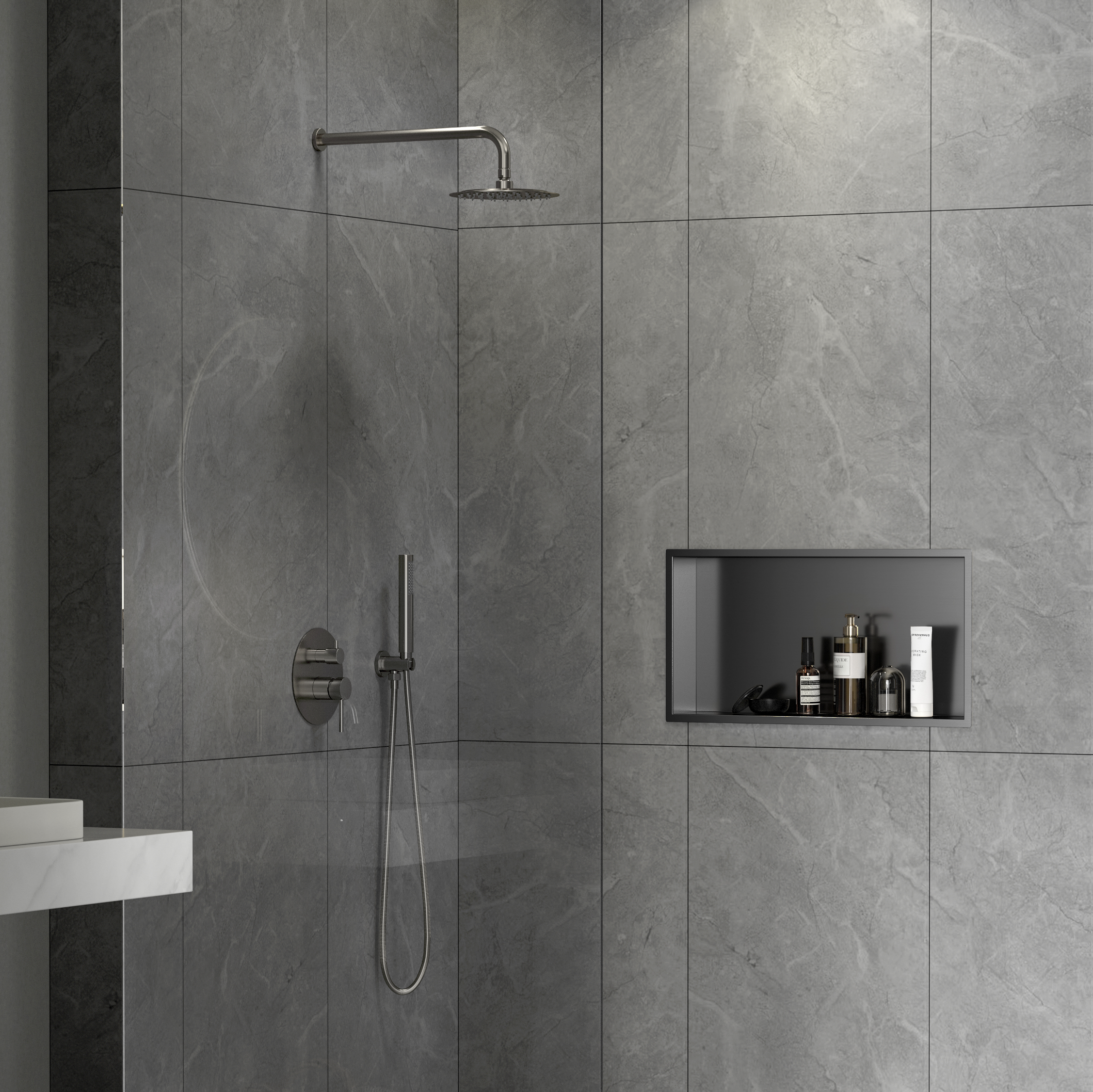 Ceramia Timeless Niche de Douche à encastrer, Acier Inoxydable 304, 60x30x10cm, Gun Métal brossé PVD