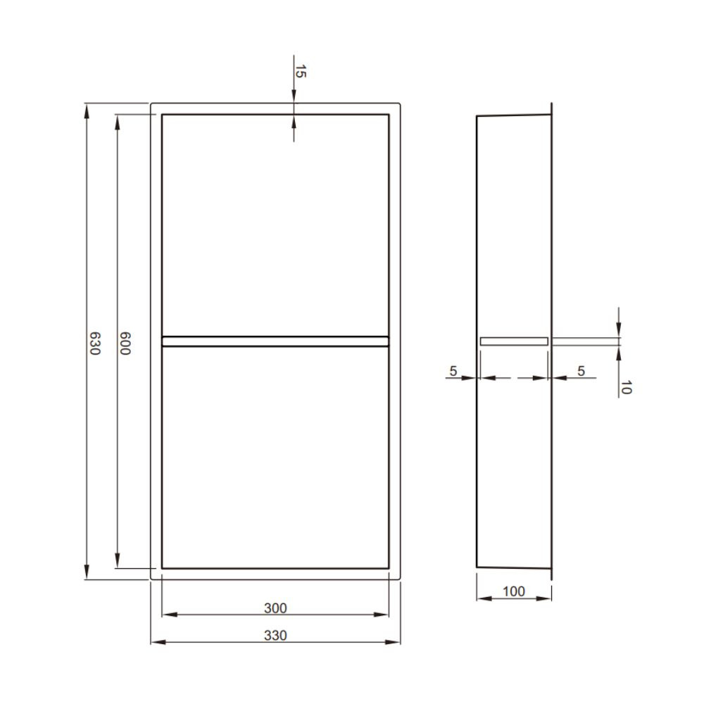 Caractéristiques de la Niche de Douche à encastrer, Acier Inoxydable 304, 2 étagères, 60x30x10cm, Gun Métal brossé PVD (TMLN-6030BGM2) :