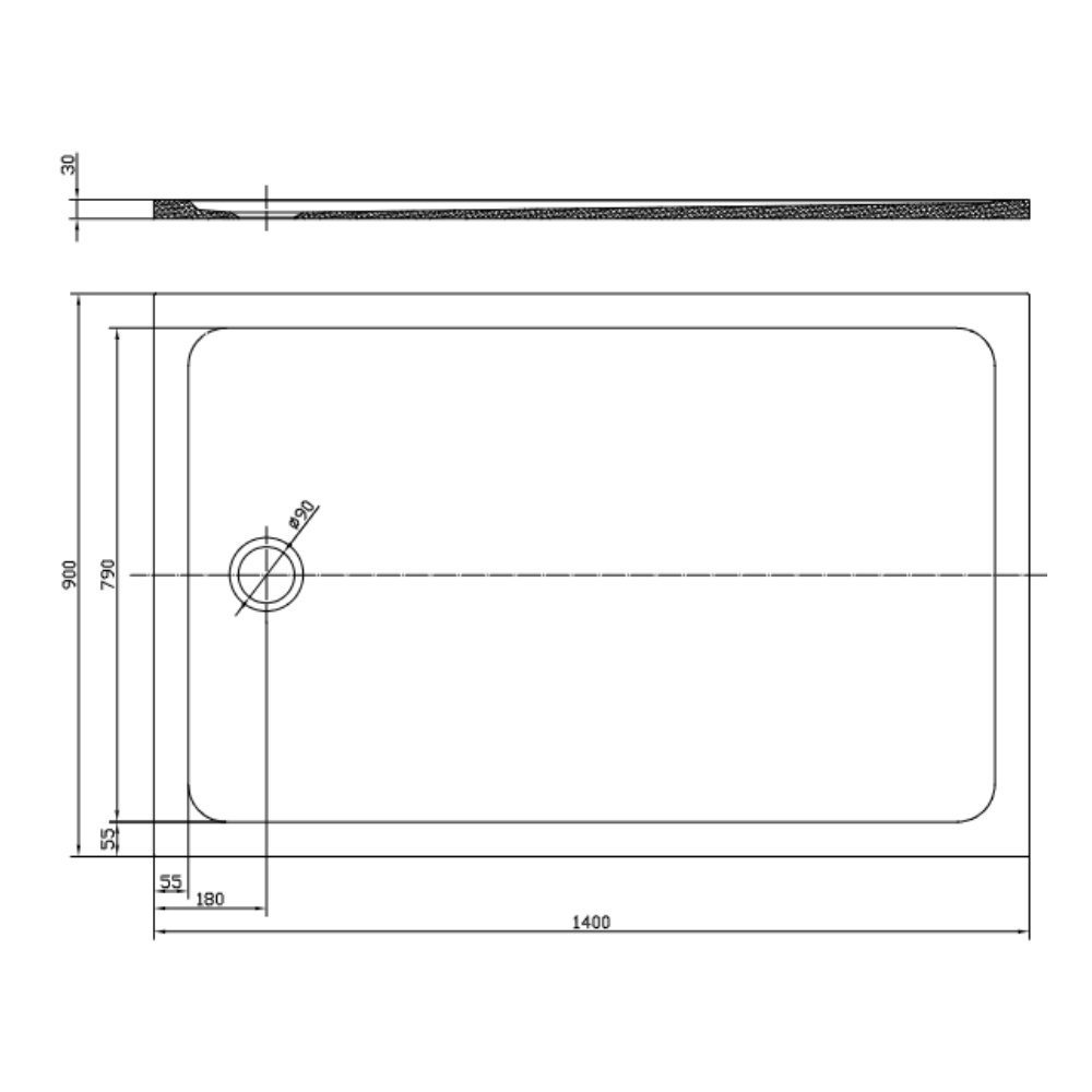 Receveur 140x90 cm en marbre coulé blanc émail, à poser ou encastrer, livré avec siphon.