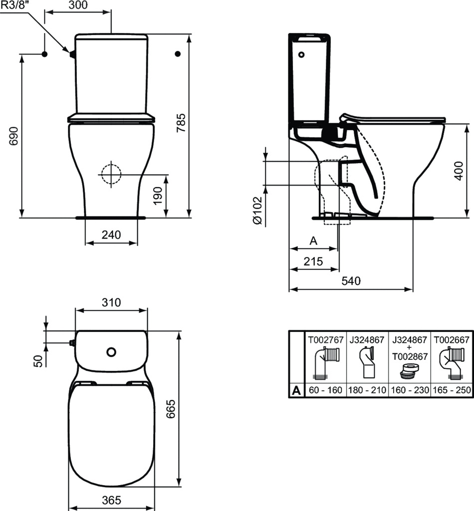 Ideal Standard Tesi aquablade pack wc à poser tout en un, sortie universelle (T033601)