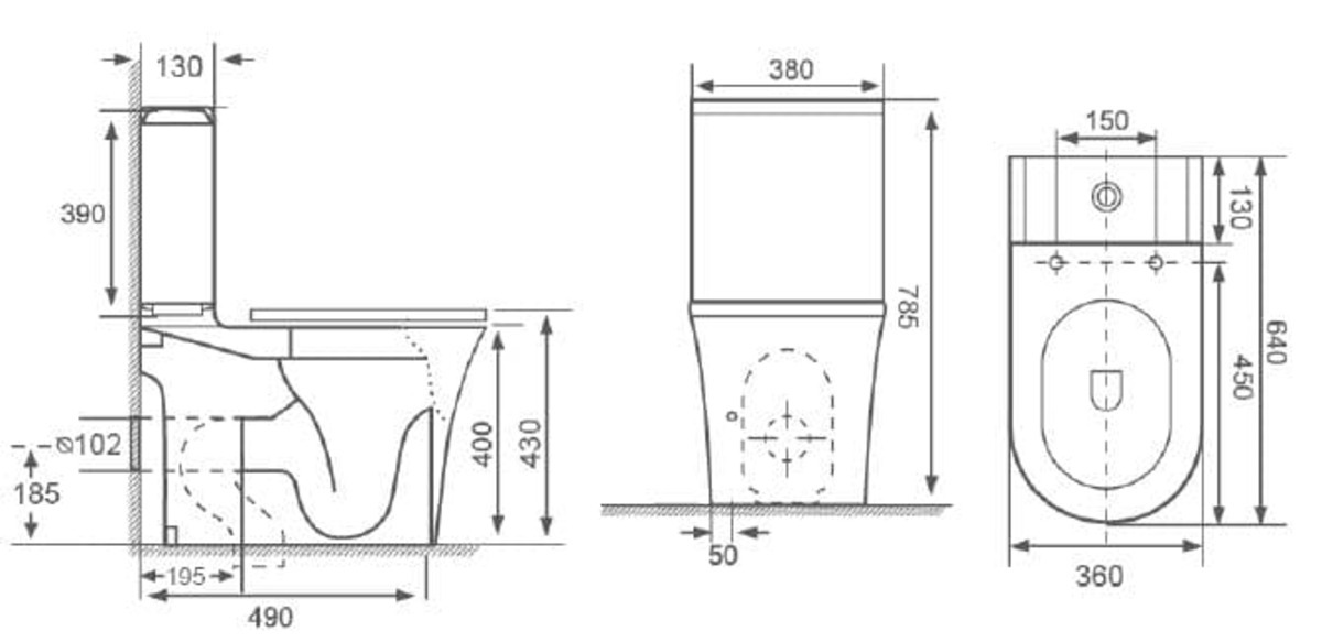 il est doté d'une cuvette sans bride (rimless) avec vidage universel, d'un réservoir avec mécanisme de chasse et d'un abattant à fermeture douce (softclose) et déclipsable. Le kit de montage est inclus dans le pack.