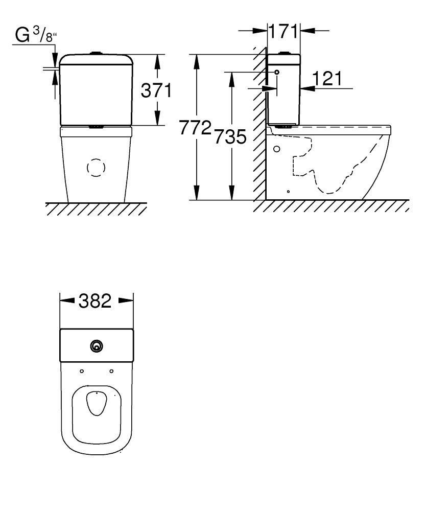 Caractéristiques du Pack WC à poser haut de gamme, alimentation arrière, Grohe Euro Ceramic (39462999) :