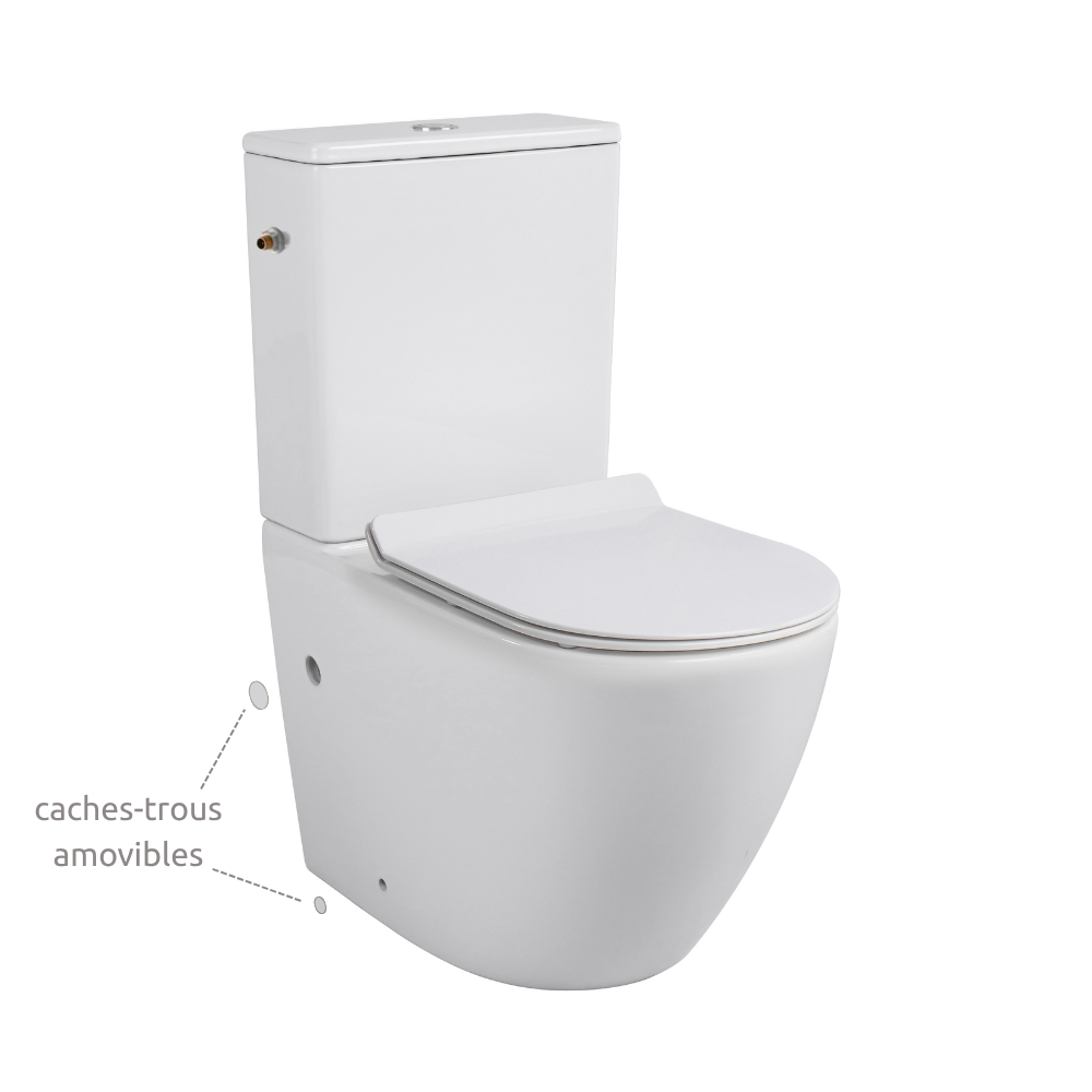 Pack WC à poser Ceramia PixL – Sans bride, SoftClose, alimentation latérale – Blanc brillant