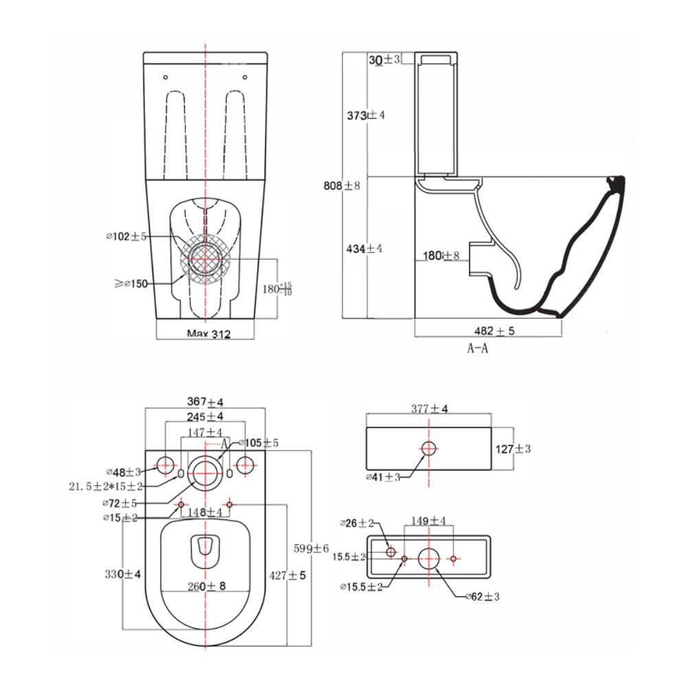 - Hauteur de la cuvette sans abattant : 43,4 cm
