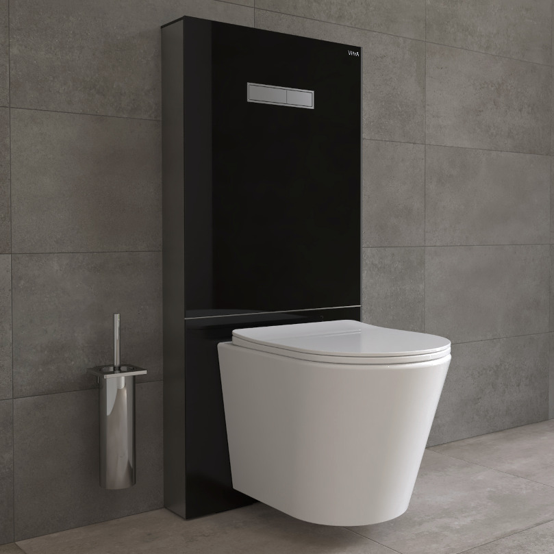 - Vitra Vitrus Bâti-support en verre trempé/aluminium brossé pour WC, 1140x518mm, Noir brillant (770-5761-01)