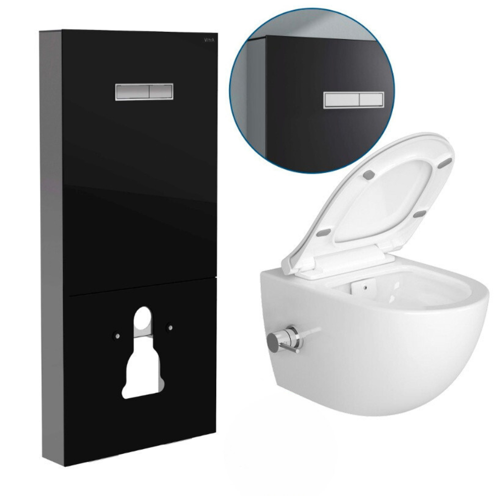 Vitra Pack WC Bâti support en verre trempé/aluminium brossé avec plaque intégrée, Noir + WC sans bride SAT, fonction bidet