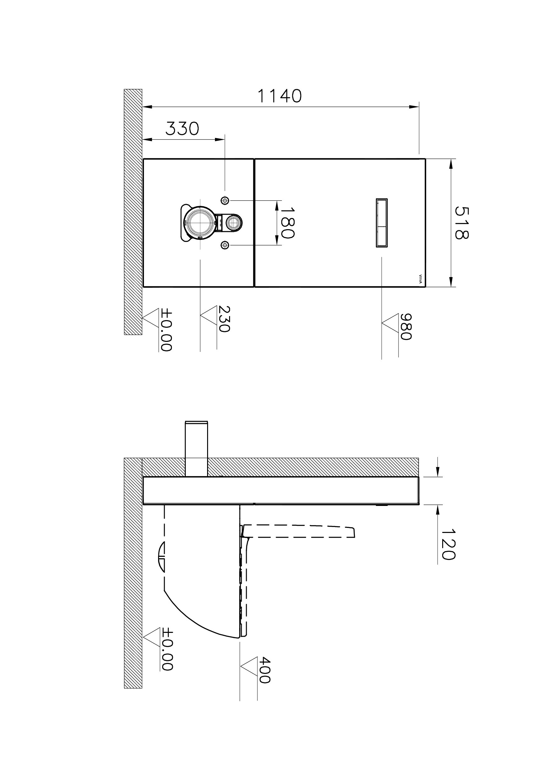 - Vitra Vitrus, Bâti-support en verre pour WC, 1140x518mm, Blanc (770-5760-01)