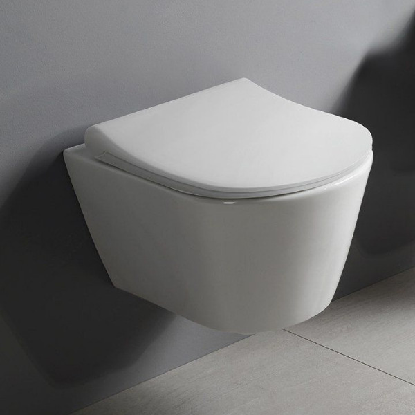 - Lucco Avva Cuvette suspendue sans bride avec abattant frein de chute, Blanc (Avvarimless)