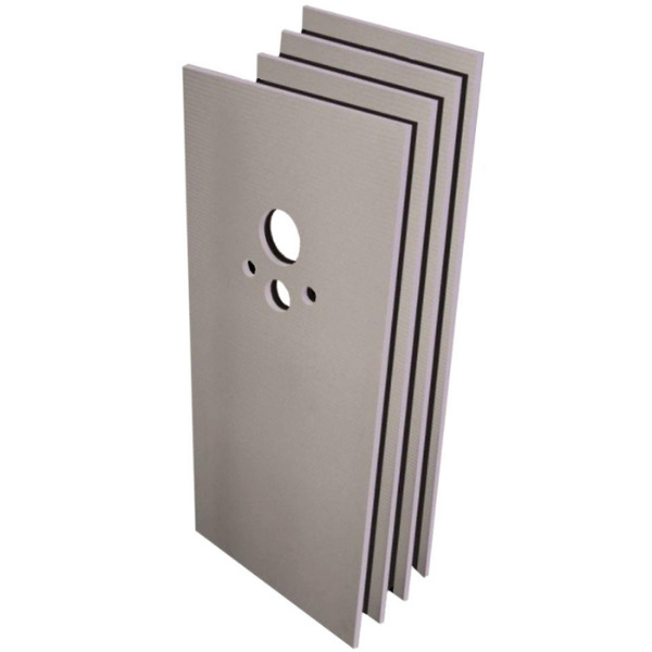 - Dimensions des panneaux : 1 panneau 1300 x 600 x 20 mm (avec découpes pour passage de canalisations) et 3 panneaux 1300 x 450 x 20 mm