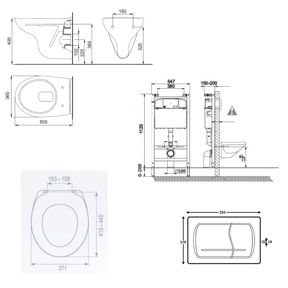 Pack Bâti-support Roca Active + WC suspendu Jika Neo + plaque chrome mat + Set habillage
