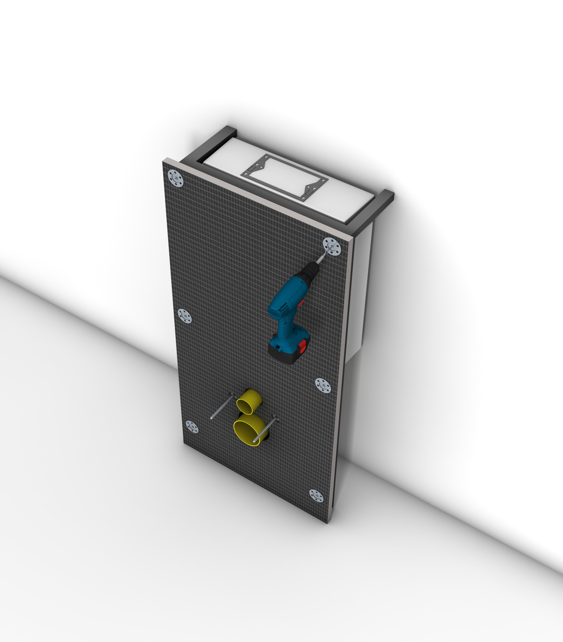 - Châssis en acier finition époxy pour cloison sèche, complètement pré-monté, livré avec connexions fixes (réglage rapide et verrouillage de la hauteur)