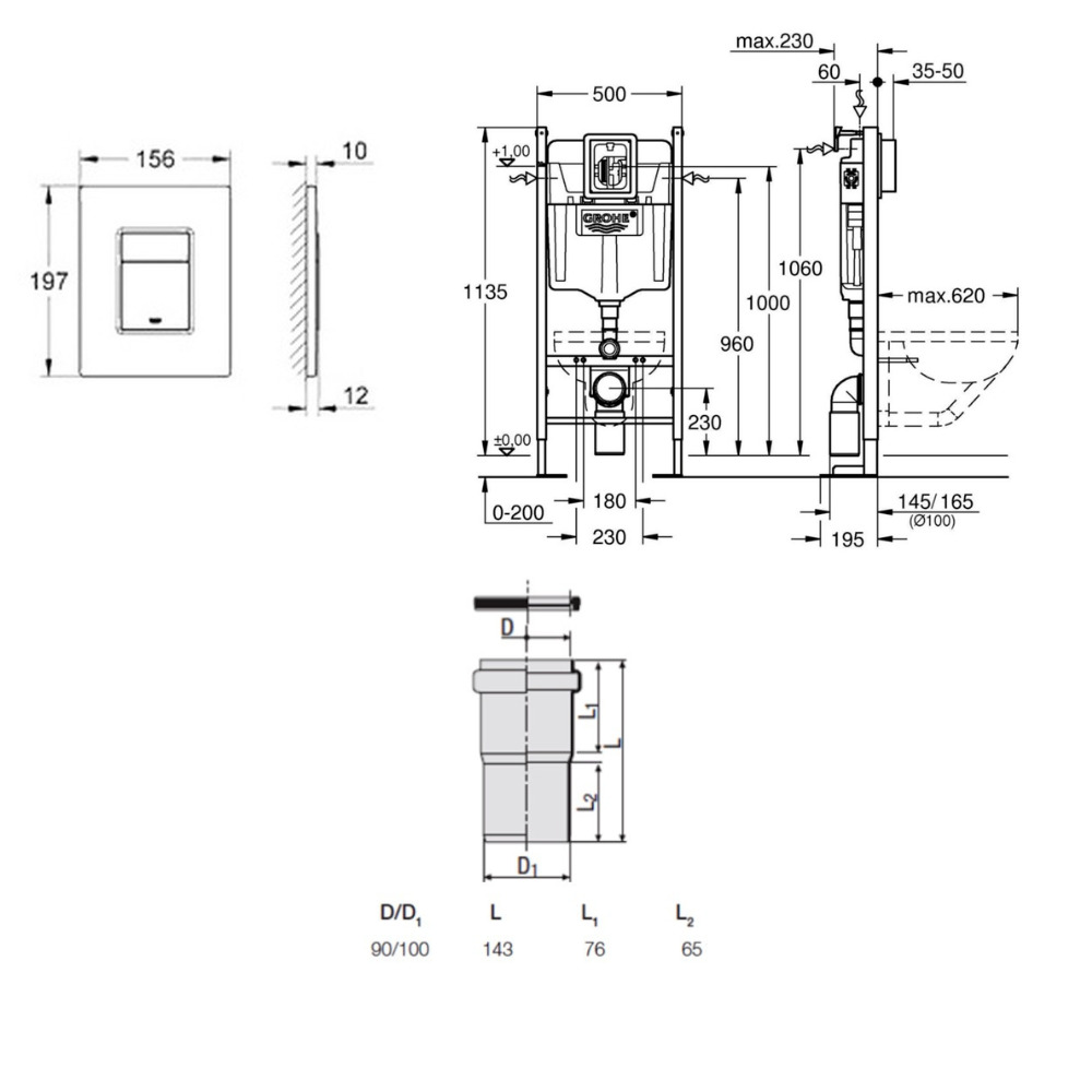 - Grohe RAPID SL Project bâti support autoportant pour WC, 1.13 M (39145000)