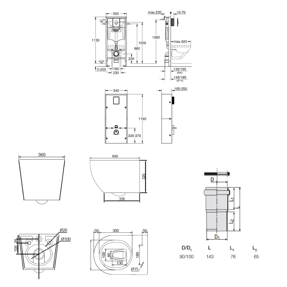 - A utiliser pour les évacuations murales et les évacuations au sol avec un distance centrée de 60 - 145 mm