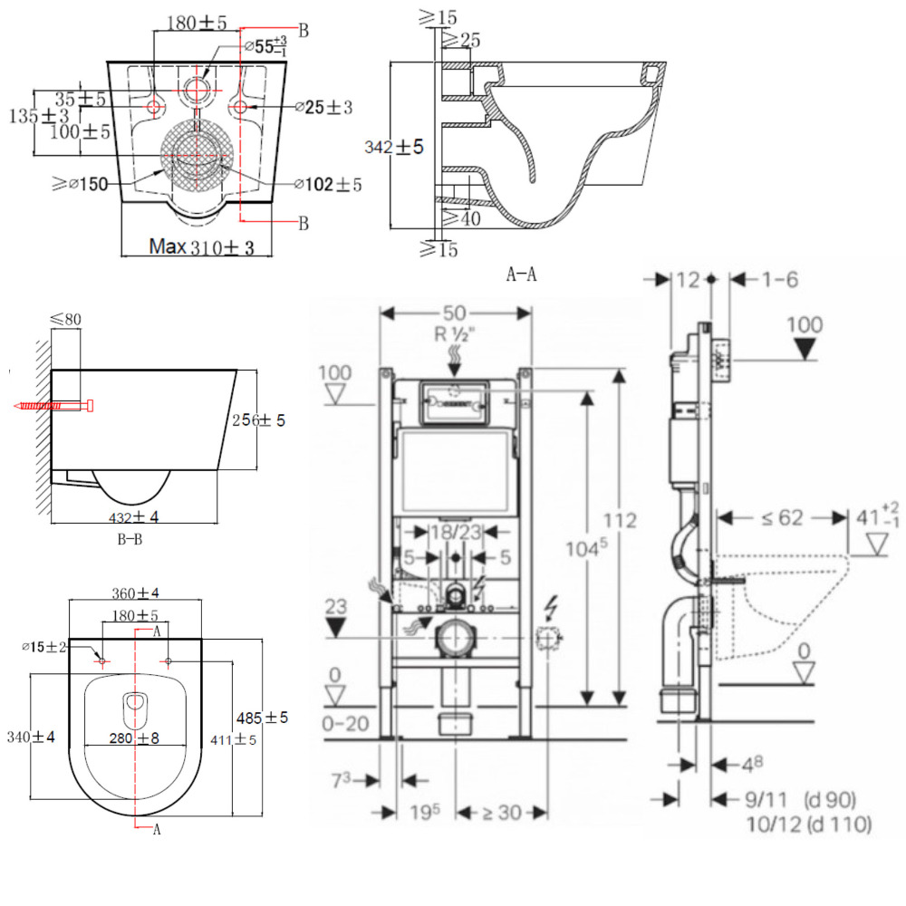 Caractéristiques du Pack Bâti-support 112cm + Cuvette Swiss Aqua Technologies sans bride + Plaque blanche (SATrimlessGeb3) :