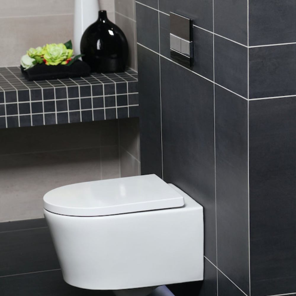 - Cuvette suspendue sans bride et fixations invisibles + abattant frein de chute (SATBRE010RREXP)