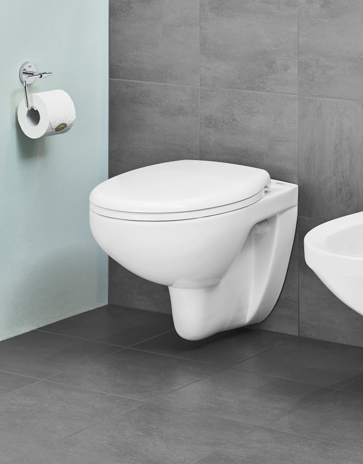 WC CERAMIC BAU Grohe cuvette sans bride (rimless) en céramique vitrifiée (39427000) + Abattant classique en Duroplast (39492000) :