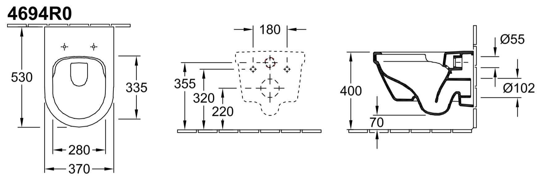 - Avec fixation murale, pieds pour charge lourde et matériel de fixation inclus, avec capuchon de protection pour la conduite d'eau de rinçage, 2 boulons de retenue M12 pour WC, réglables entre 180 et 230 mm avec capuchon de protection et écrous, instruction de montage, sans plaque de déclenchement