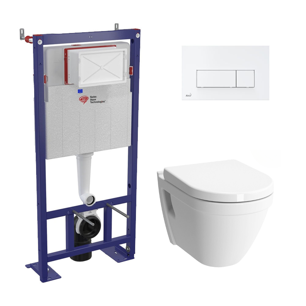 Swiss Aqua Technologies Pack WC bâti-autoportant + Cuvette Vitra S50 + Abattant softclose + Plaque blanche (SMART-S50-4)