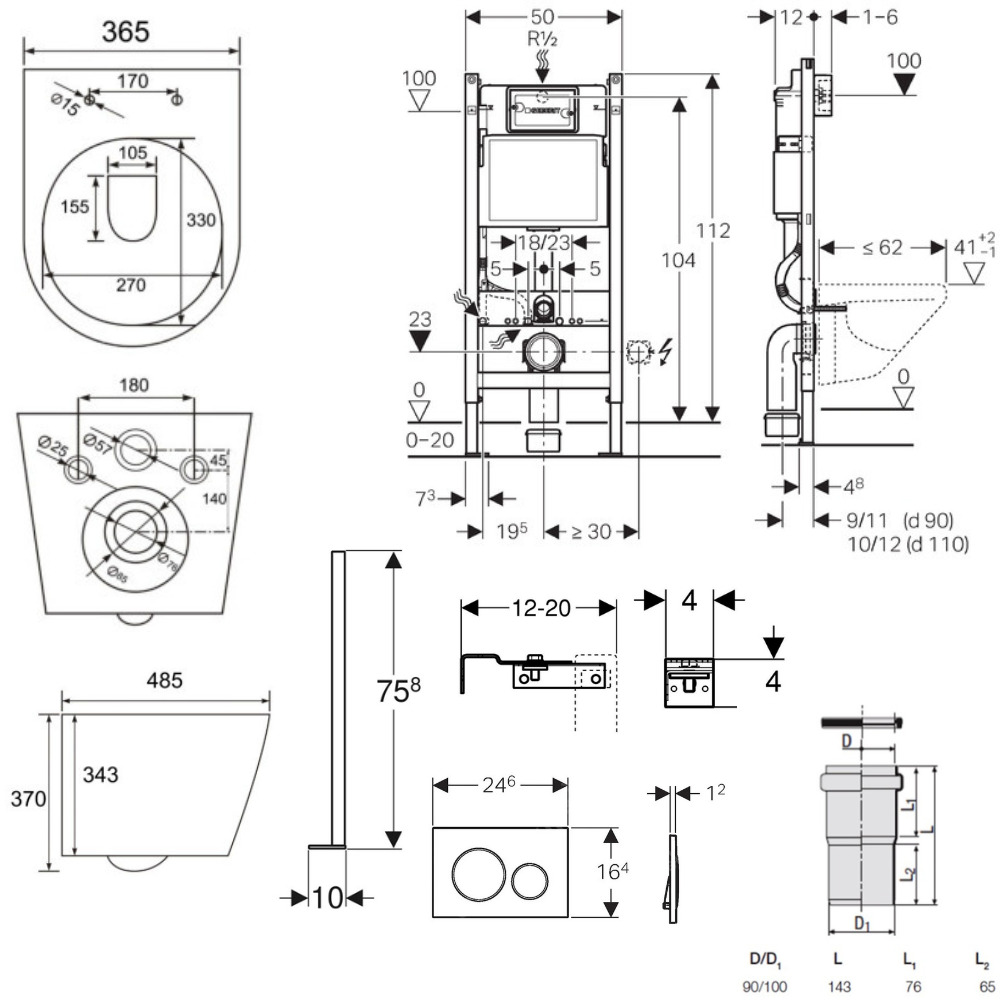 Geberit DUOFIXBasic pour toilettes suspendues, avec réservoir Delta (111.153.00.1) :