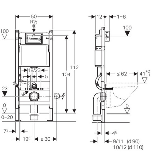 Geberit DUOFIXBasic pour toilettes suspendues, avec réservoir Delta (111.153.00.1) :