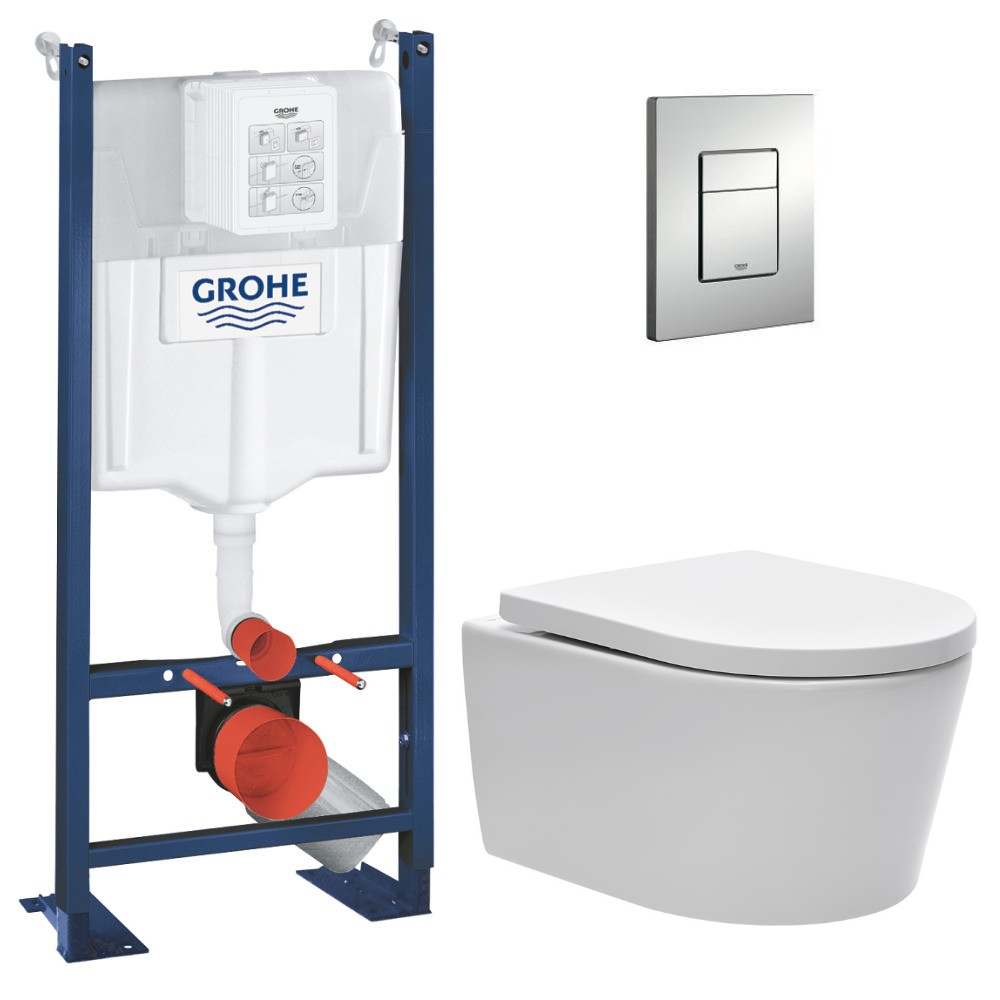 Grohe Pack WC Bâti autoportant + WC sans bride SAT + Abattant softclose + Plaque chrome (ProjectSATrimless-5)