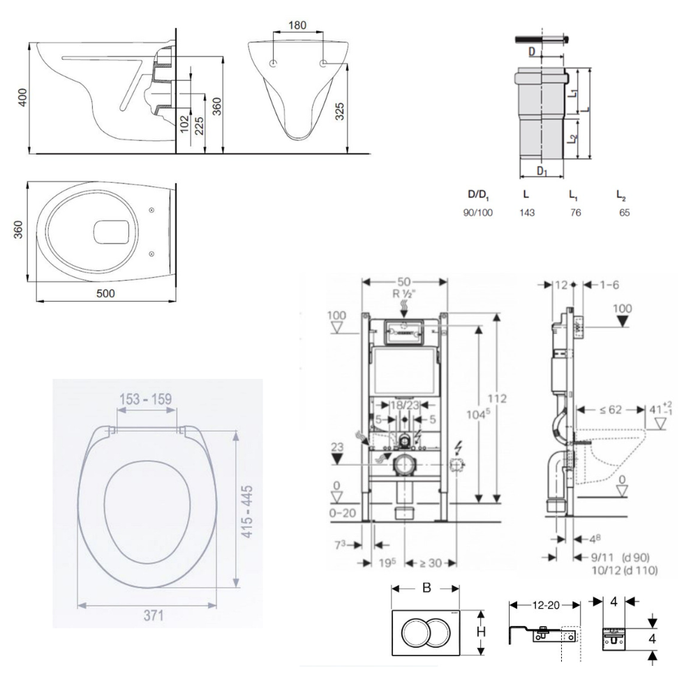 - Geberit Delta Pack bâti-support Duofix 112cm + plaque de commande blanche Delta01 + fixations murales (111.154.11.3)