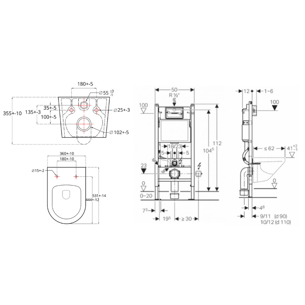 Pack bati-support Geberit 112cm + WC sans bride Swiss Aqua Technologies Brevis + abattant ultra-fin (BREVISGEB3)