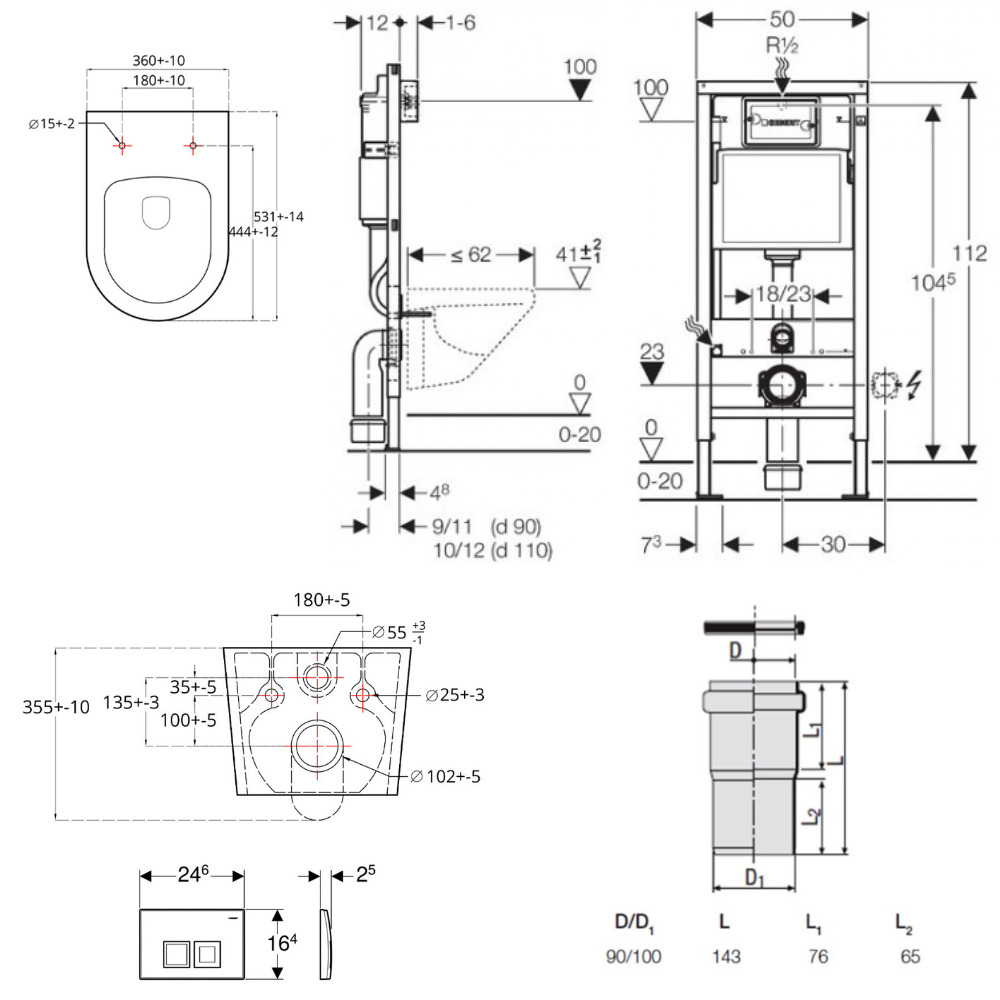 - Geberit Ensemble bâti-support Duofix UP100 + réservoir pour WC 112 cm (458.103.00.2)