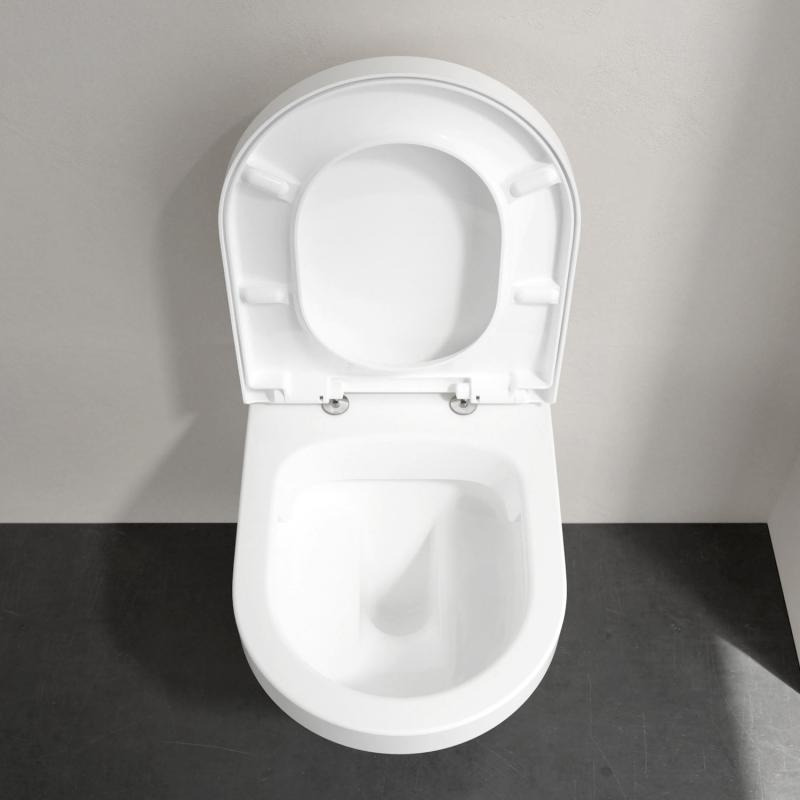 Ce pack WC se compose de la cuvette suspendue sans bride et l’abattant en Duroplast ainsi que du bâti-support Viconnect pro de la marque Villeroy & Boch.
