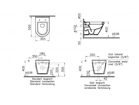 - Livré avec tiges et écrous pour fixation de la cuvette WC
