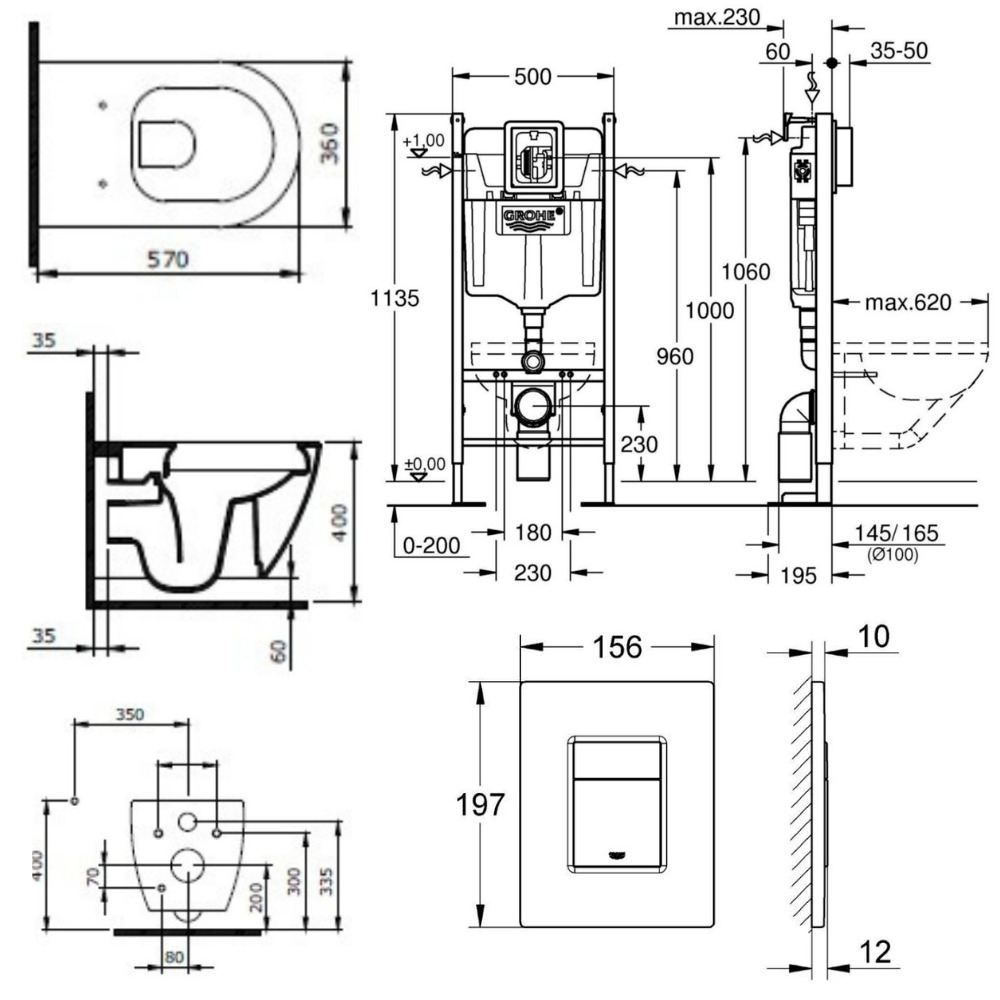 - Grohe RAPID SL Project bâti support autoportant pour WC, 1.13 M (39145000)