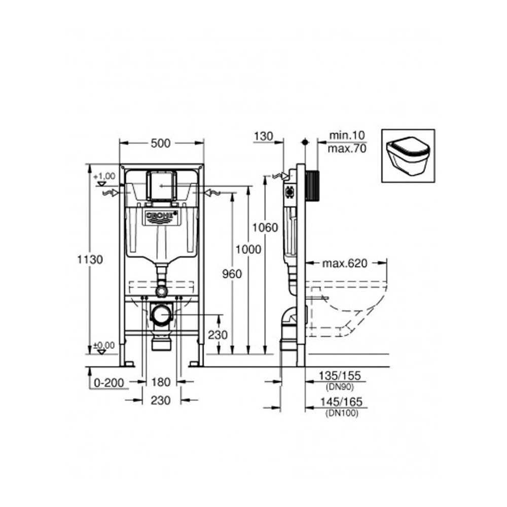 Transformez votre salle de bains en un espace de rêve avec le pack WC complet comprenant le bâti support Rapid SL de la marque GROHE et la cuvette sans bride Serel.