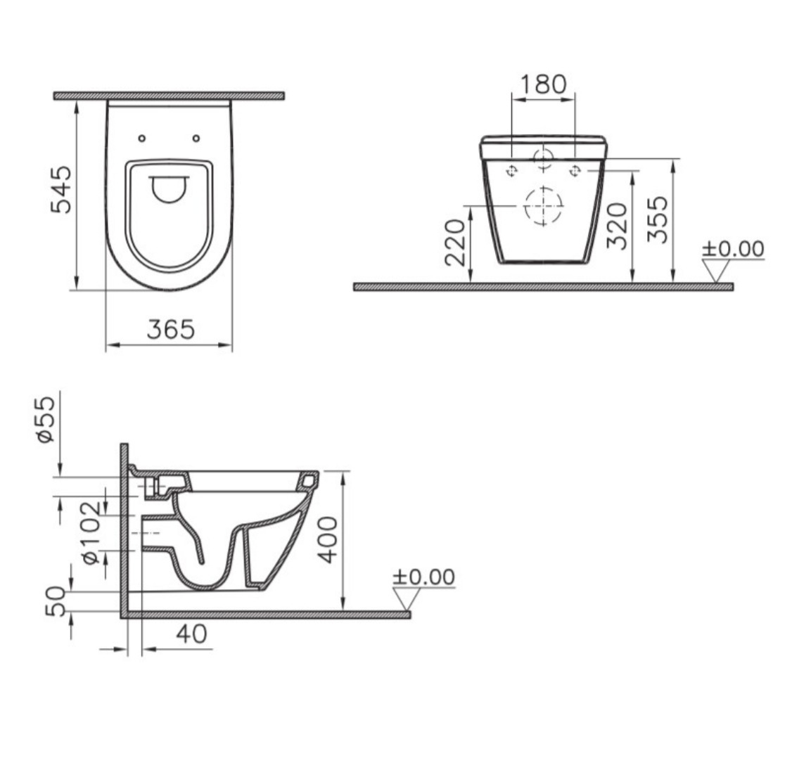 Caractéristiques du Pack WC Bâti-support + Cuvette suspendue Vitra S50 + Abattant frein de chute + Plaque blanche et chromé: