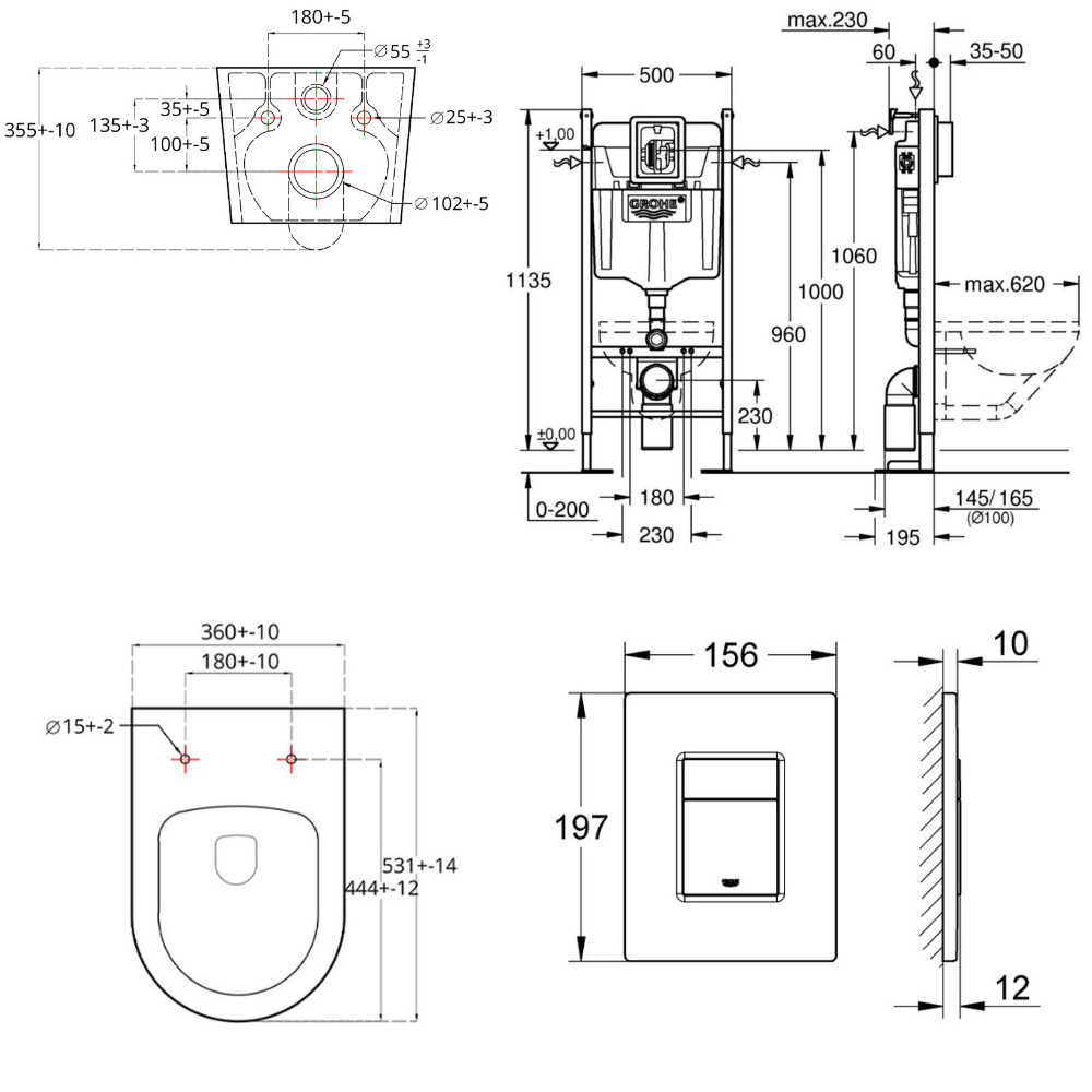Grohe Pack WC Bâti autoportant + WC sans bride SAT Brevis + Abattant ultra-fin softclose + Plaque chrome (ProjectBrevis-1-SP)