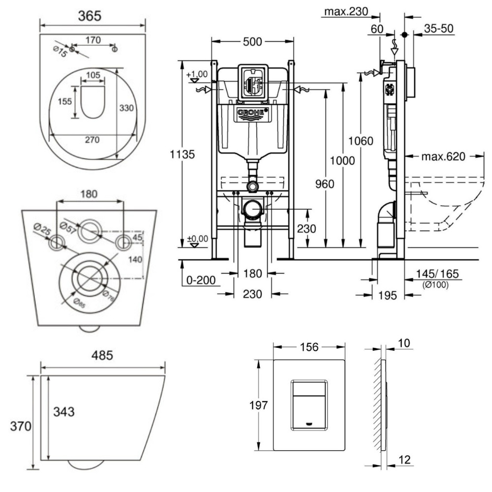 - Grohe RAPID SL Project bâti support autoportant pour WC, 1.13 M (39145000)